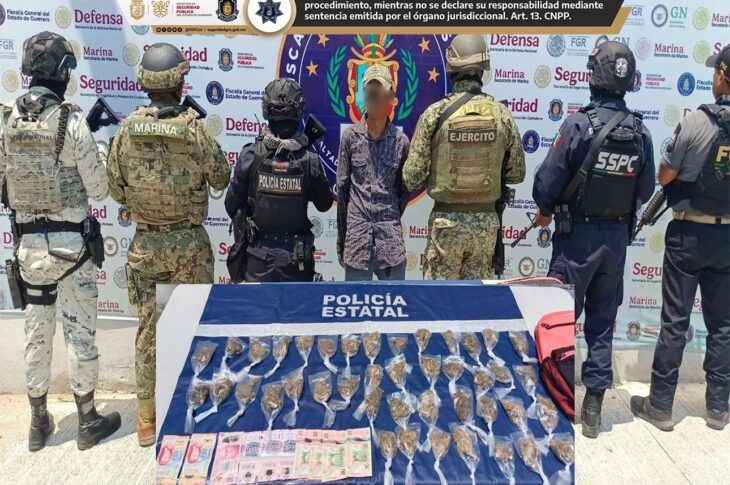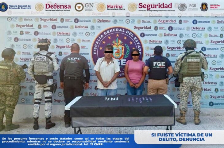 FiscalíaGuerrero FGE Guerrero y fuerzas de seguridad detienen a dos personas con presunta droga en Acapulco marzo 28, 2026