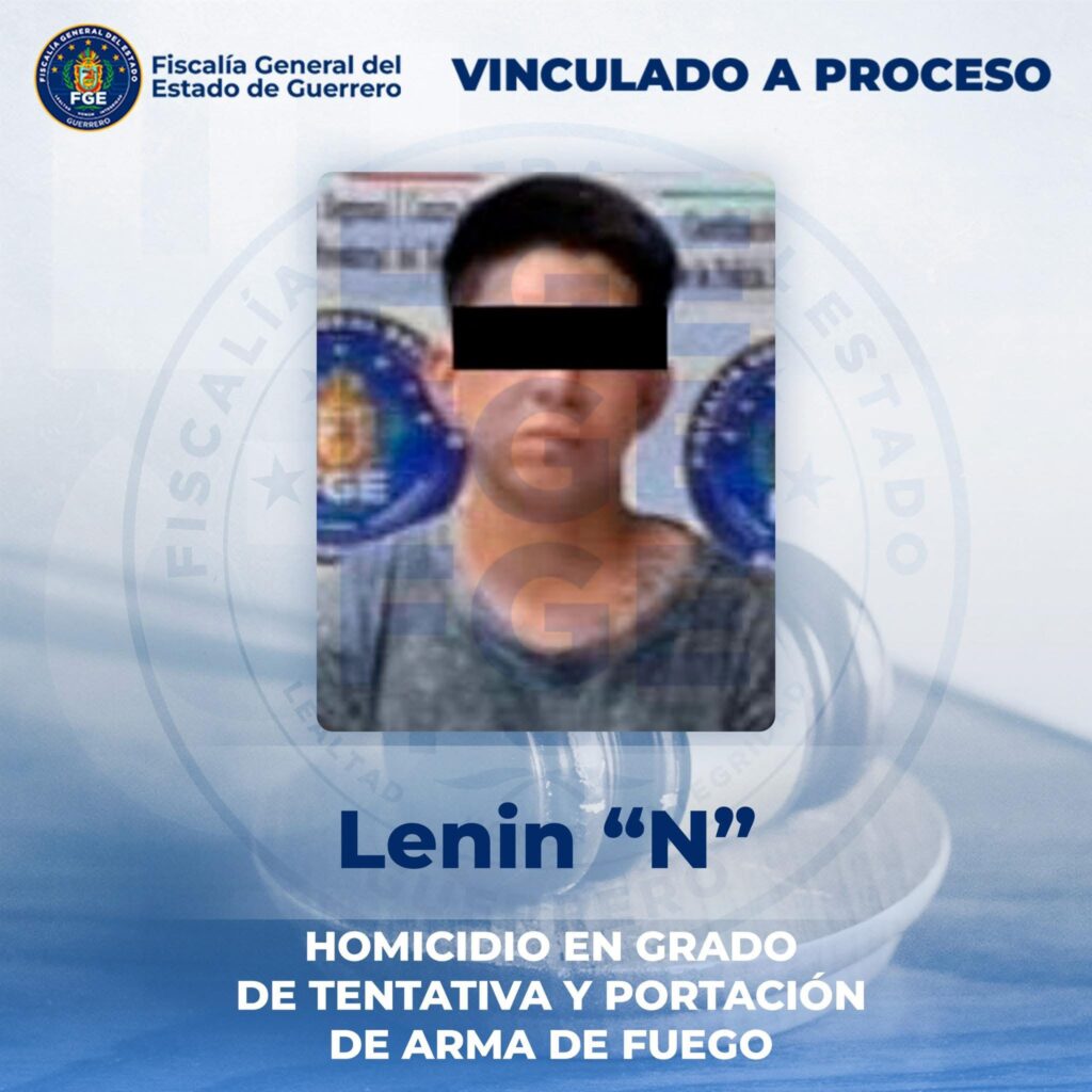 Chilpancingo, Gro., a 17 de julio de 2025. – La Fiscalía General del Estado de Guerrero (FGE Guerrero) logró la vinculación a proceso de Lenin “N”, por su probable responsabilidad en los delitos de homicidio en grado de tentativa y portación de arma de fuego, en agravio de Vladislav “N”, por hechos ocurridos en el municipio de Chilpancingo de los Bravo.