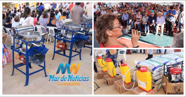 De manera simbólica, la alcaldesa entregó un molino eléctrico para el para el nixtamal a María de Jesús Rosas Mora; un termo para inseminación artificial a Darío Álvarez Loeza; molino forrajero a Marcelino Vega Guerrero; una bomba aspersora a Susana González Carmona; moto bomba de 5.1 caballos de fuerza a Paula Guevara Ramírez; tres válvulas de riego a José Juan Duran Torres; un molino forrajero a Alberto Castillo; un vale de galeras a Guadalupe Robles Urióstegui y una báscula ganadora a Sabino Caballero Martínez.