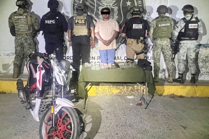 FiscalíaGuerrero Detiene FGE Guerrero a masculino en flagrancia con arma de fuego, droga y motocicleta en Acapulco diciembre 10, 2025