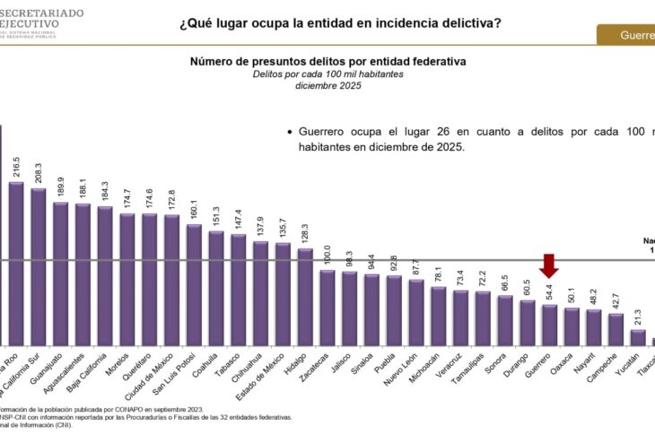 Guerrero Guerrero avanza en seguridad al ubicarse entre los estados con menor incidencia delictiva en 2025 enero 20, 2026