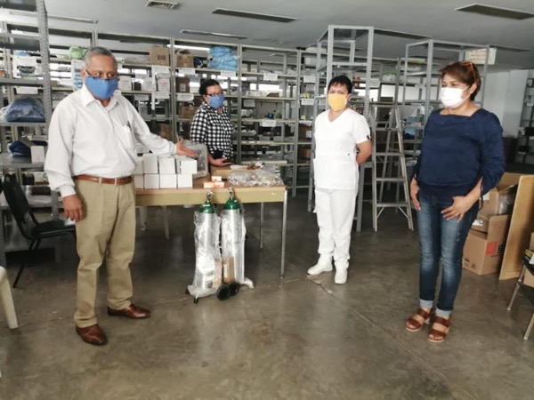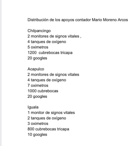 13 de abril de 2020, Chilpancingo, Gro.- 5 monitores de signos vitales, 10 tanques de oxígeno, 15 oximetros, 3 mil cubrebocas tricapa y 50 googles, envió el Secretario de Desarrollo Social de Guerrero, Mario Moreno Arcos, a centros de trabajo del ISSSTE de la entidad.