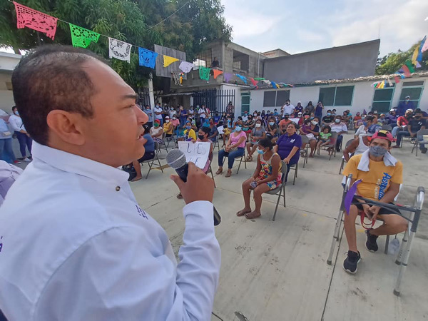 Ante la asamblea vecinal, el dirigente estatal del Partido Encuentro Solidario (PES) Marco Antonio Santiago Solís, tomó protesta a quienes trabajarán hombro a hombro con la aspirante a la diputación local en distrito 05 Miriam Tenorio.