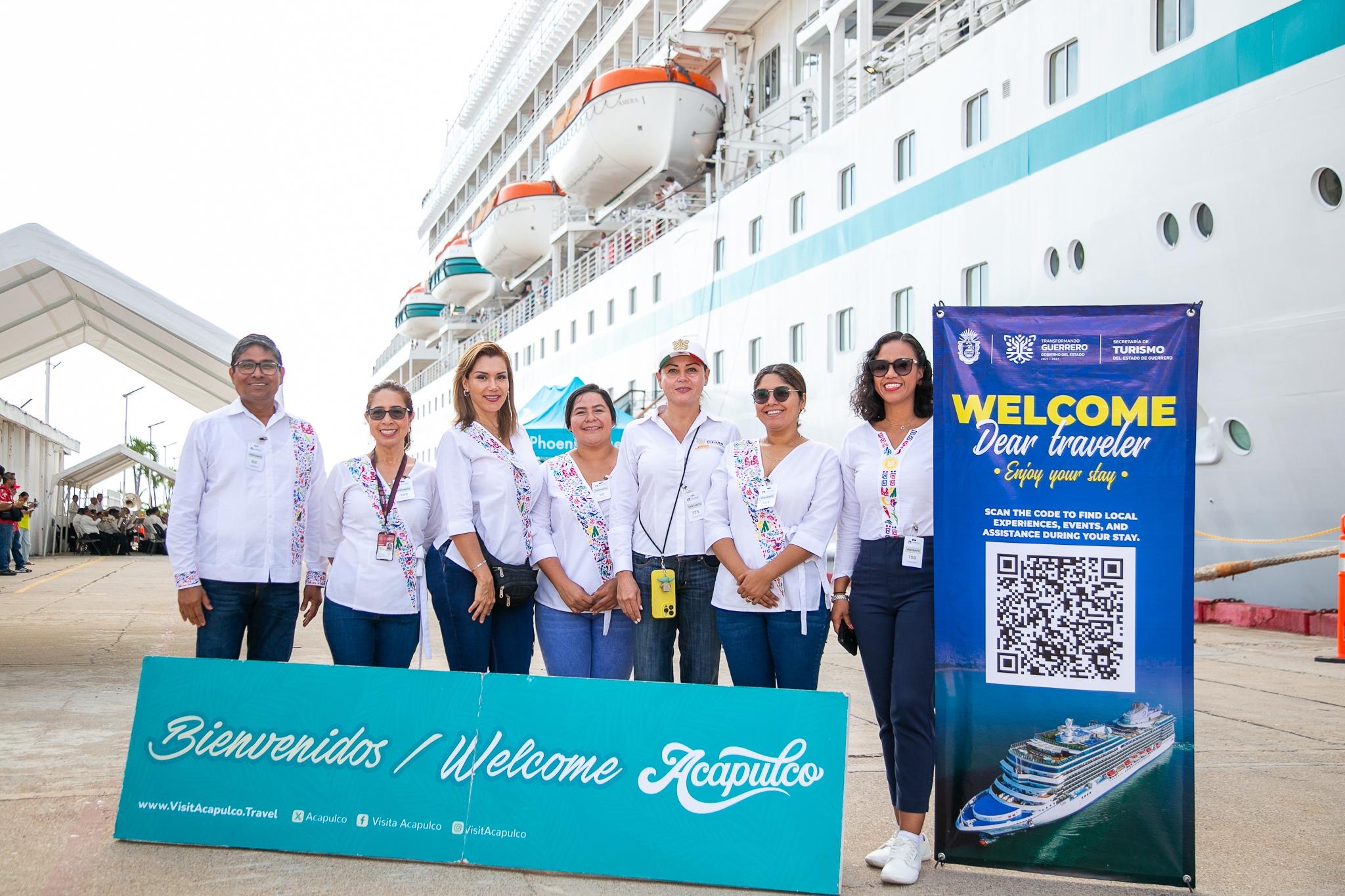 En representación de la Secretaría de Turismo Guerrero, la subsecretaria de Planeación Turística, Rosy Pavón, dio la bienvenida a los pasajeros del MS Amera, a quienes invitó a disfrutar durante su estancia de las grandes maravillas, riqueza cultural, belleza natural y atractivos turísticos que ofrece Acapulco, Hogar del Sol, destacando la hospitalidad y vocación turística del puerto.