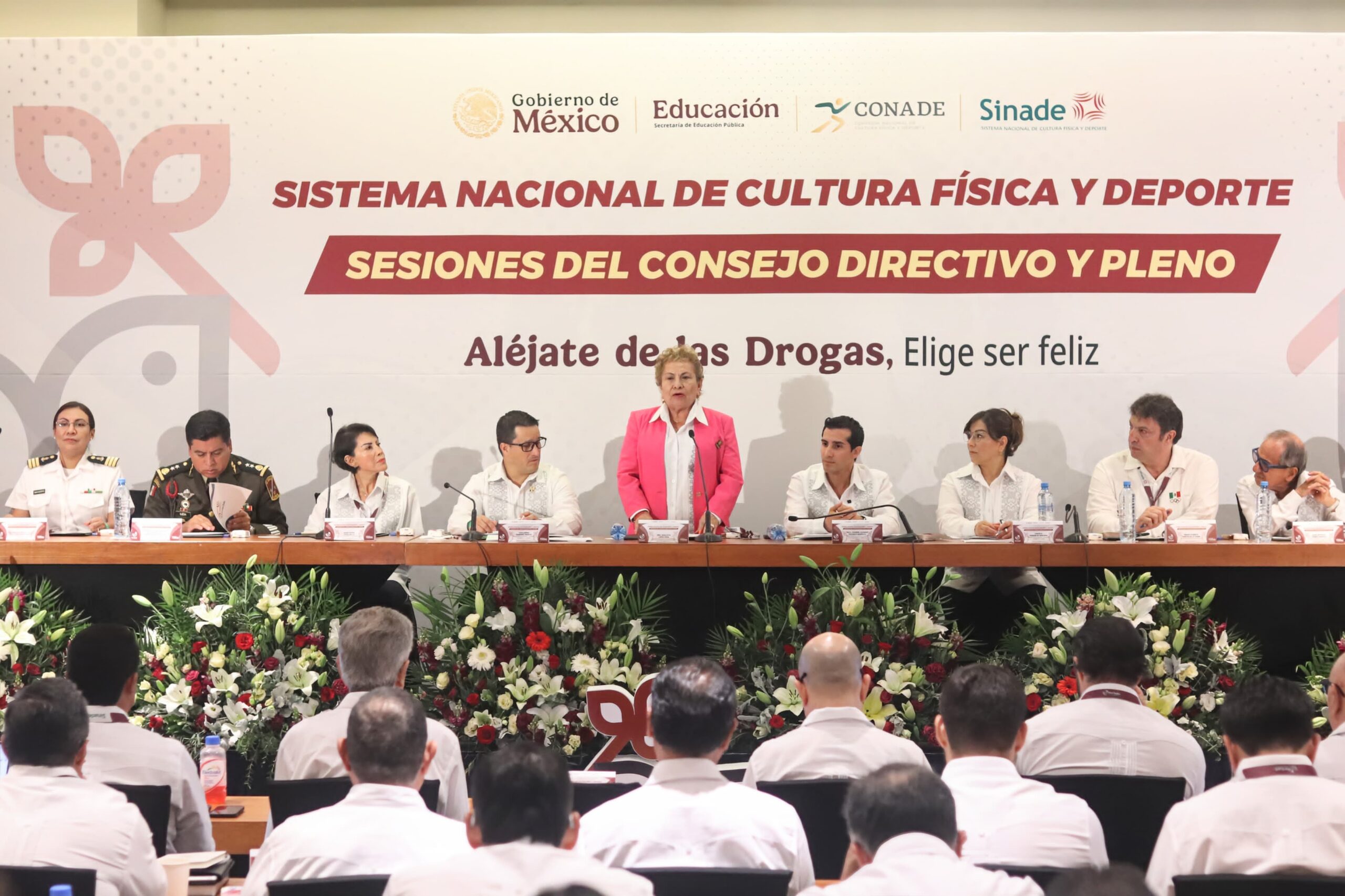 Acapulco, Gro., 29 de abril 2025.- Como parte de la estrategia del Gobierno de México para combatir la violencia y las adicciones entre las juventudes, este día se llevó a cabo en Acapulco la Sesión Ordinaria del Consejo Directivo y del Pleno del Sistema Nacional de Cultura Física y Deporte (SINADE) 2025, encabezada por el titular de la Comisión Nacional de Cultura Física y Deporte (CONADE), Rommel Pacheco Marrufo, junto a la encargada de despacho de la Secretaría General de Gobierno, Anacleta López Vega, quien asistió con la representación de la gobernadora, Evelyn Salgado Pineda.