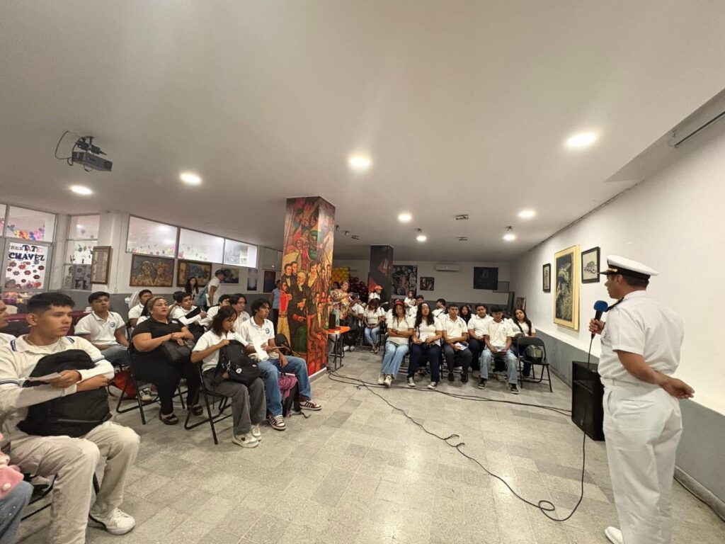 En la Biblioteca Pública Municipal Número 22, ubicada en el Zócalo, representantes de la Octava Región Naval y del Ejército Mexicano sostuvieron un diálogo con alumnos, en el que expusieron rutas claras de incorporación dentro de sus instituciones.