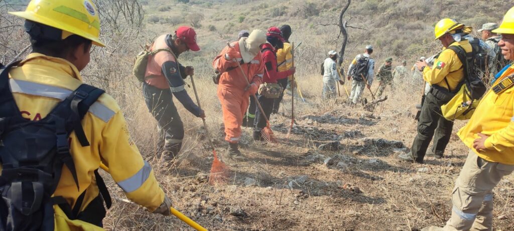 Las labores de combate han sido encabezadas por elementos de la Secretaría de Gestión Integral de Riesgos y Protección Civil, la Secretaría del Medio Ambiente y Recursos Naturales, la Comisión Nacional Forestal, Sedena, Guardia Nacional, Protección Civil Municipal y grupos voluntarios.