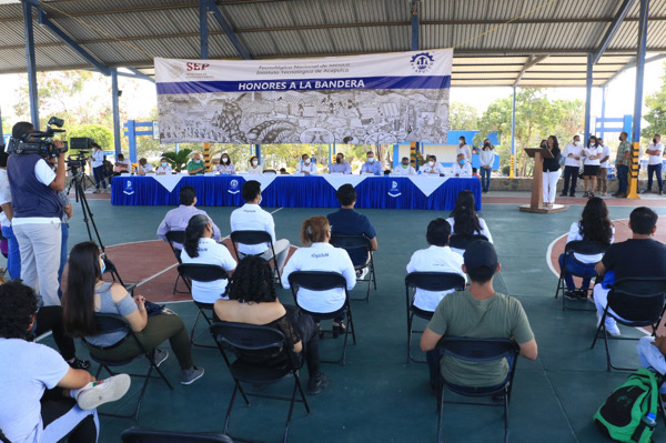 En la cancha techada de la institución, la primera autoridad del municipio destacó que la vinculación entre la administración municipal y los estudiantes es determinante para el desarrollo de quienes se encuentran próximos a egresar.
