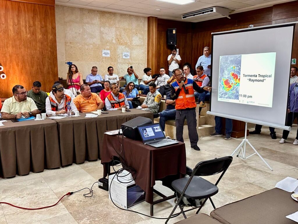 Momentos después de la intervención del coordinador general de Protección Civil y Bomberos, Raúl Noyola Rocha, el encargado del Centro de Monitoreo, Juan Ramón Ramírez Miranda, informó que la Tormenta Tropical Raymond registró en Acapulco ráfagas de hasta 55 kilómetros por hora y precipitaciones máximas de 21.6 milímetros, consideradas de moderadas a fuertes. Además, precisó que el fenómeno se ubicaba a 190 kilómetros al sur-sureste de Zihuatanejo, con vientos sostenidos de 75 km/h y desplazamiento de 22 km/h, y que se prevé su tránsito sobre Colima el próximo viernes.