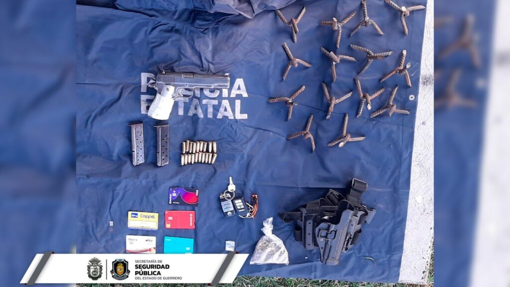 Asegura la Policía Estatal cartuchos, presunta droga y poncha llantas en el municipio de Chilpancingo