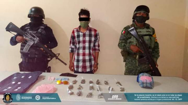En dos acciones distintas, elementos de la Policía Estatal en coordinación con la Secretaría de la Defensa Nacional (SEDENA) detuvieron a una persona y aseguraron una bolsa con presunta droga en el municipio de Acapulco.