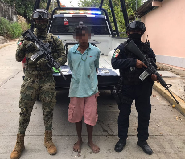 Acapulco, Gro., 05 junio de 2022.- Durante un recorrido para la prevención del delito, realizado de manera conjunta efectivos de la Policía Preventiva Urbana y de la Secretaría de Marina (SEMAR) por la colonia Miramar, aseguraron a una persona del sexo masculino en posesión de pipas para consumir droga y dosis de presunta sustancia.