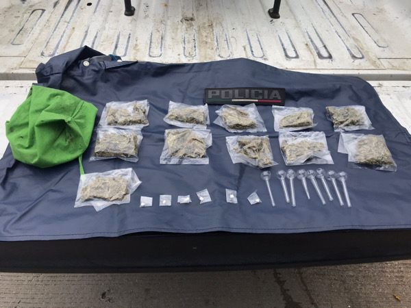El detenido en la colonia en mención, dijo llamarse José “N”, se le encontró entre sus pertenencias 11 bolsitas de plástico conteniendo hierba seca con las características de la marihuana, 06 bolsitas con una sustancia similar a la droga conocida como piedra y 08 pipas para consumir droga.
