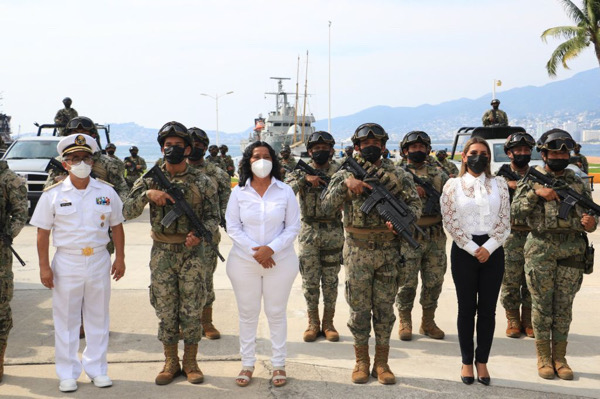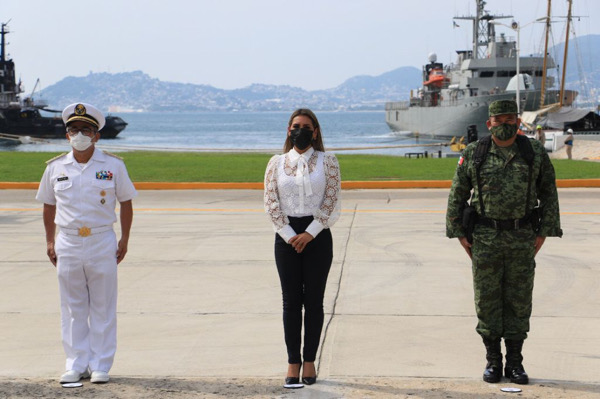 En las instalaciones de la Octava Región Naval, la jefa del Ejecutivo estatal reafirmó su compromiso para procurar el bienestar de las y los guerrerenses, a través de acciones de coordinación, que contribuyan a la pacificación en la entidad.