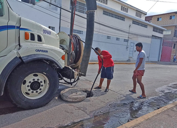El director del área operativa de este organismo, Alfredo Rivera Alarcón, informó que, en la calle 16 de septiembre entre la Tamarindos y Almendros, se desazolvo el drenaje sanitario con apoyo del camión vactor, también se llevó a cabo la limpieza de pozos de visita y se sondeó con varillas para destapar la red y quedara trabajando de forma normal.