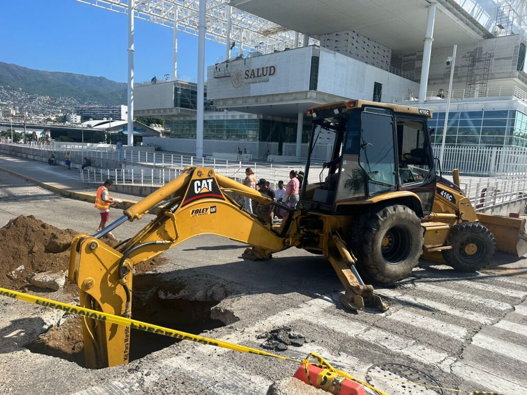 La Comisión de Agua Potable y Alcantarillado del Municipio de Acapulco (CAPAMA), informó que se encuentra personal en la zona y se inició con la demolición a mano con dos marros y dos barretas.