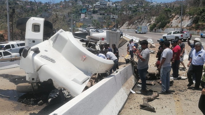 En el percance se vio involucrado un camión de volteo que llevaba escombro y tierra, el cual volcó sobre la vía, quedando atrapado en la cabina el conductor de la unidad.