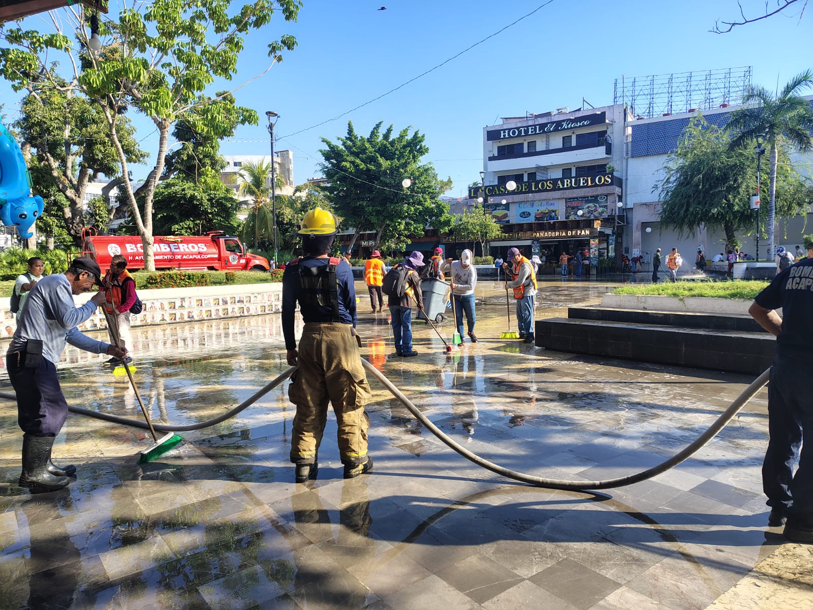 Atiende Servicios Públicos el zócalo de Acapulco con lavado integral