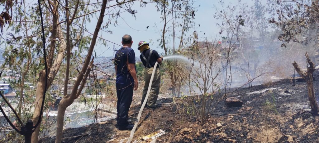 El departamento de Bomberos; reportó que este miércoles a las 12:00 horas, se recibió la llamada de emergencia del siniestro, registrándose la quema de pastizal y residuos orgánicos a la altura de la calle Pueblo Nuevo de la colonia Bellavista, por lo que inmediatamente, las unidades 062 y 063, realizaron los trabajos de mitigación.