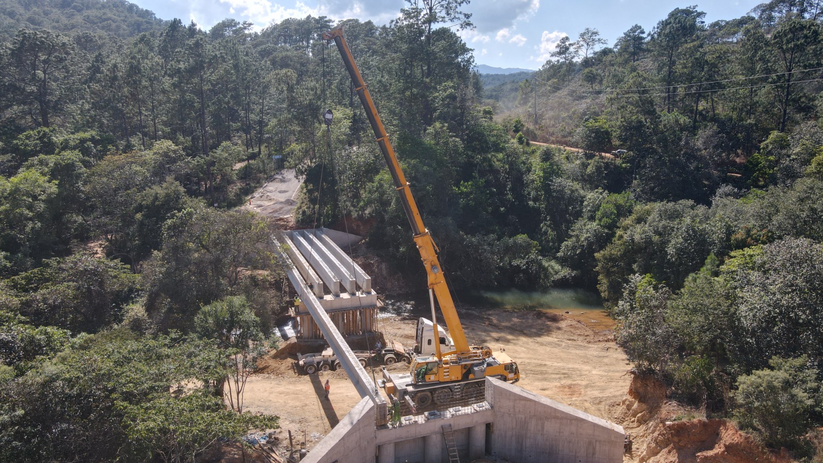 Avance del 70% la construcción del puente vehicular Arroyo Campana en San Luis Acatlán