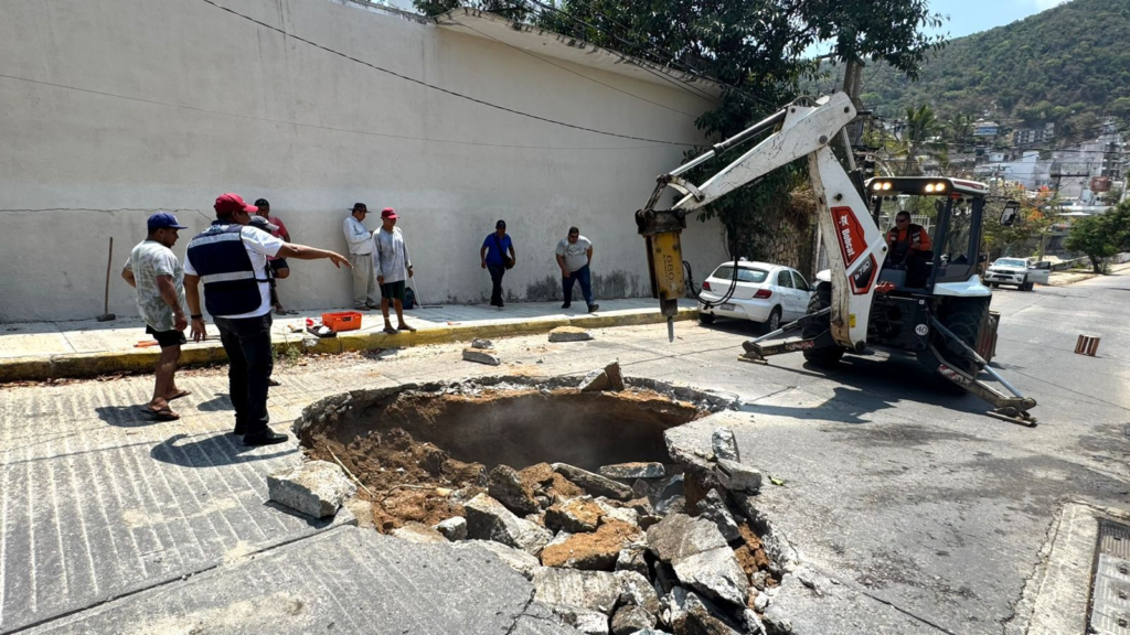 Acapulco, Gro., 26 de abril de 2026.- Personal de la Comisión de Agua Potable y Alcantarillado del Municipio de Acapulco (Capama) trabaja por segundo día consecutivo en la atención de fugas y del sistema de drenaje sanitario en el fraccionamiento Costa Azul, como parte del operativo integral instruido por la presidenta municipal, Abelina López Rodríguez.
