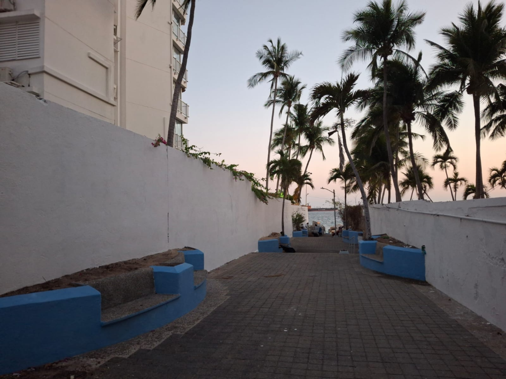 Entre las labores efectuadas en el acceso a playa Elcano se encuentra la aplicación de pintura en jardineras, barandales y luminarias, además del caleo en la barda perimetral. En el acceso a La Playita se intervino el mobiliario urbano con pintura en jardineras, peraltes, muretes, luminarias y estructuras tubulares.
