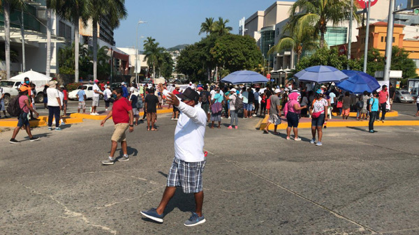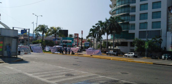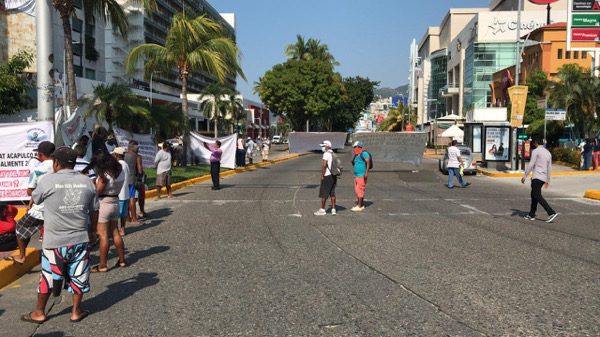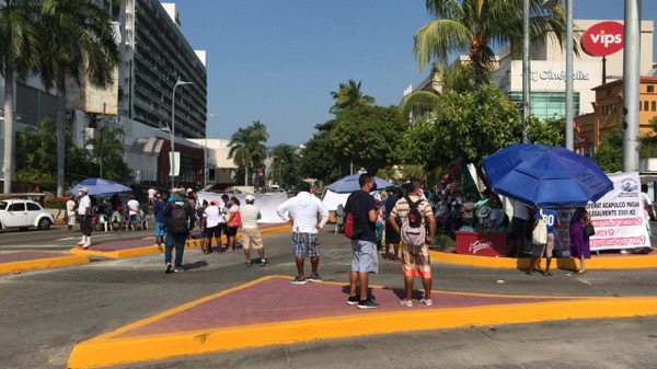 Acapulco, Guerrero., 20 de octubre.- Cerca de 200 integrantes del Frente de Defensa de los Prestadores de Servicios Turísticos de la Zona Federal Marítimo Terrestre de Acapulco bloquearon ambos sentidos de avenida Costera Miguel Alemán, en la Glorieta La Diana.