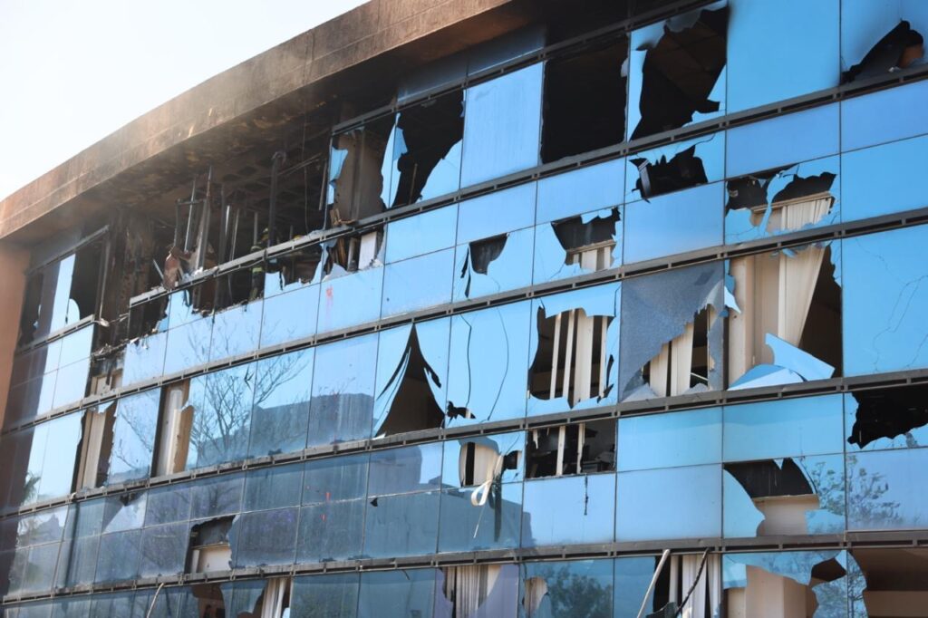 Bomberos de SGIRPCGRO sofocan el fuego que afectó 15 vehículos y el tercer piso del edificio Montaña de Palacio de Gobierno
