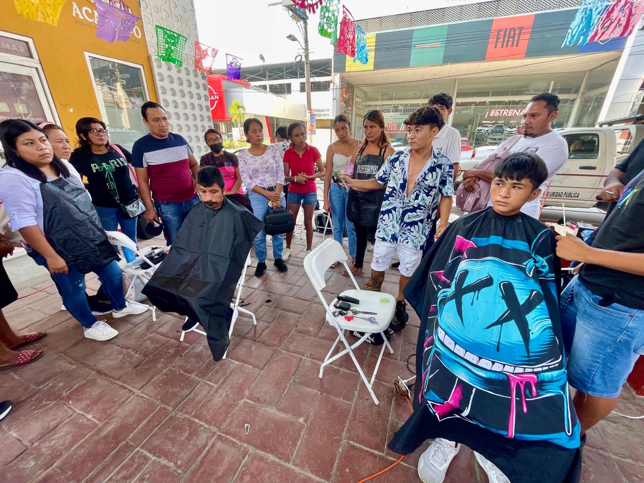 La directora del Instituto Municipal de la Juventud (IMJUVE) Angélica Díaz Rojas, destacó que en colaboración con el Centro de Capacitación para el Trabajo Industrial (CECATI) 41, durante esta segunda sesión, 35 personas realizan prácticas y técnicas de corte de cabello.