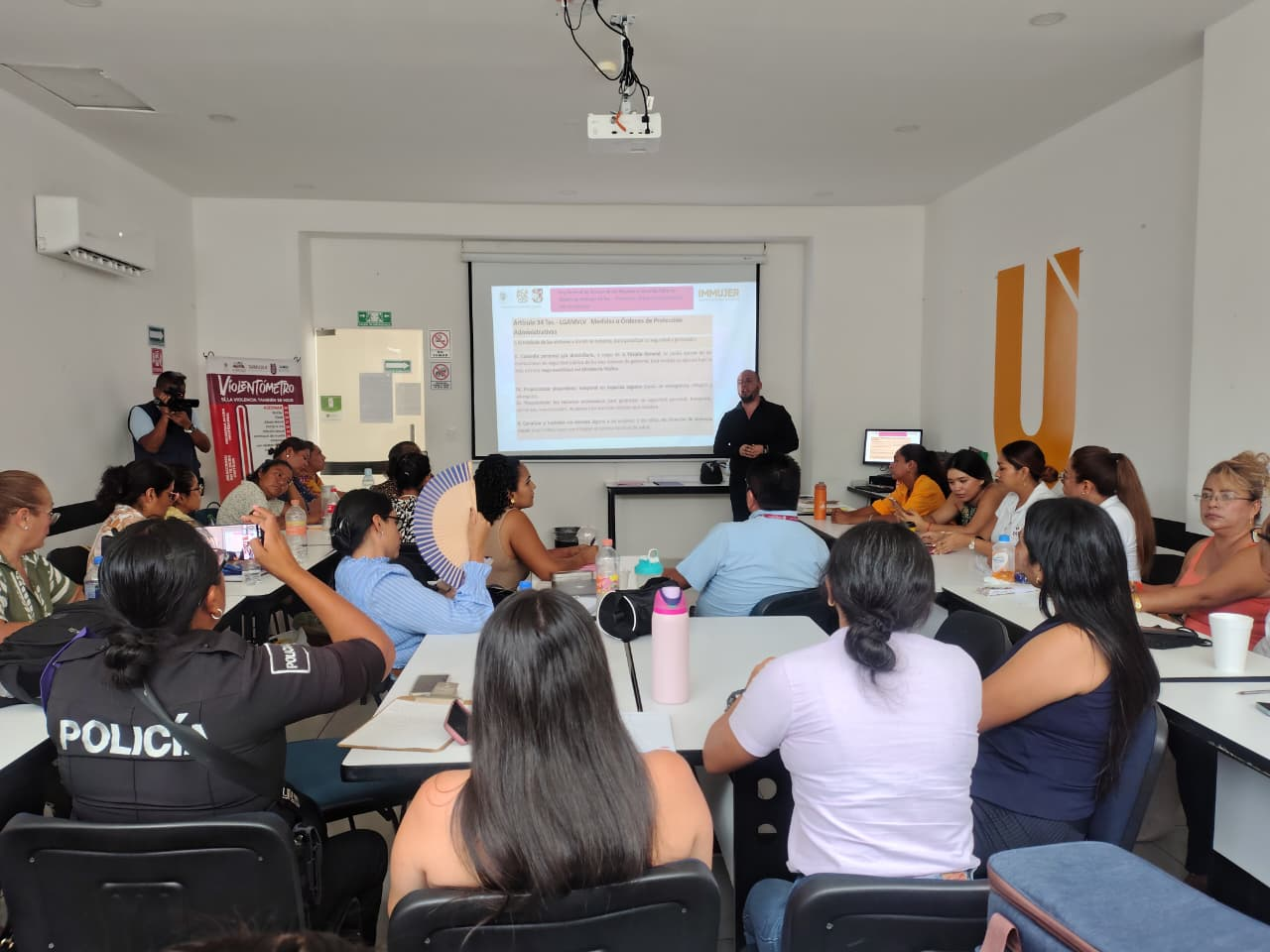 La primera de dos sesiones reunió a personal del Sistema para el Desarrollo Integral de la Familia (DIF), la Policía de Género de la Secretaría de Seguridad Pública, la Dirección de Salud Municipal y el propio Immujer, áreas que mantienen contacto directo con mujeres en contextos de vulnerabilidad.