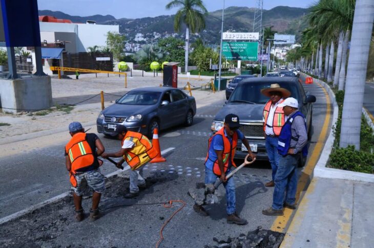 Guerrero El gobierno del estado realiza trabajos de bacheo y mantenimiento en la avenida Escénica de Acapulco febrero 27, 2023