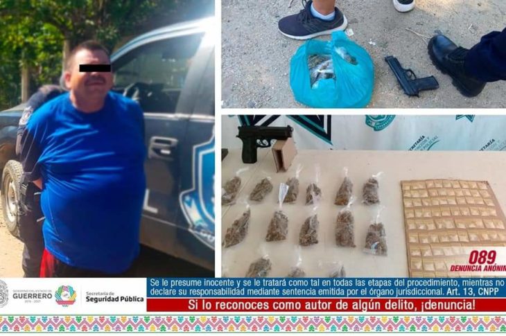 Detienen a un hombre con arma y droga en Zihuatanejo