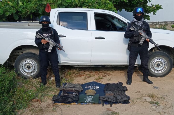 Policiaca Asegura la Policía Estatal chalecos tácticos y un vehículo en el municipio de Florencio Villarreal octubre 13, 2022