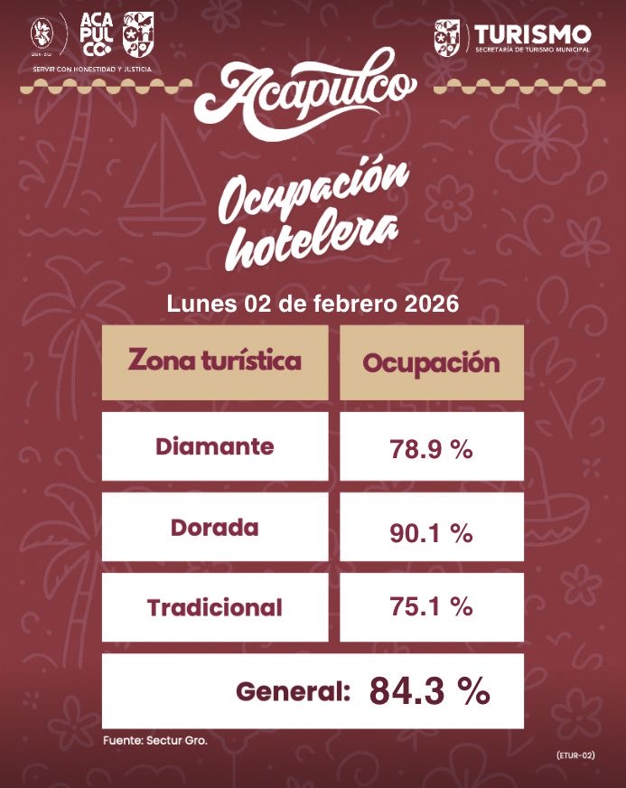 Con estos resultados, Acapulco consolida un arranque de año favorable para la actividad turística y mantiene expectativas positivas para las próximas temporadas vacacionales.