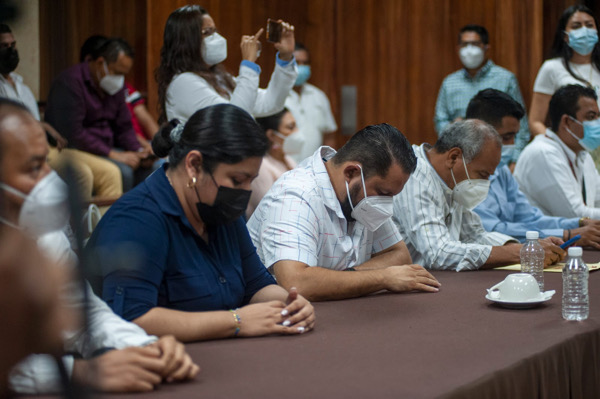 Por su parte, Arturo Latabán, en su calidad de enlace y también como representante y coordinador del comité de la presidenta electa, señaló que la documentación no cumple con los propios requisitos que mandata la ley para tales efectos, como son foliados y certificados, además de que ante la premura, no pudieron ser verificados, por lo que solicitó que quede asentado que se recibieron como un legajo simple.