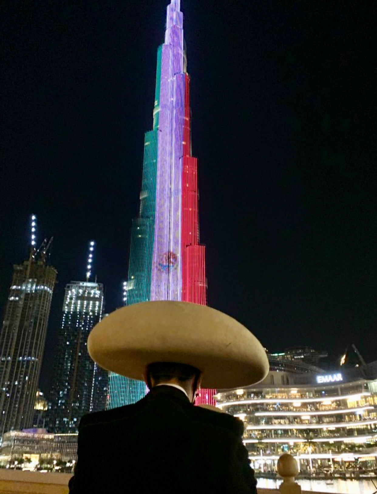 La embajada de los Emiratos Árabes Unidos en México publicó unas fotografías, donde el rascacielos se viste con los colores representativos de México.