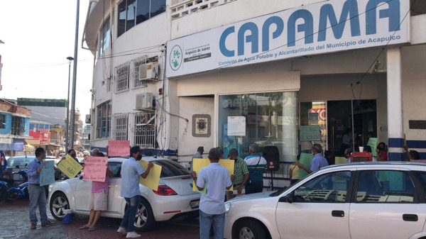 Un grupo de cerca de 50 habitantes de diferentes colonias y comunidades rurales del puerto de Acapulco se manifestaron en las instalaciones de la Comisión de Agua Potable del Municipio (CAPAMA), para exigir servicio de agua potable en la ciudad y que se revisen los cobros excesivos, ya que hay casos de familias que tienen recibos hasta por 60 mil pesos.