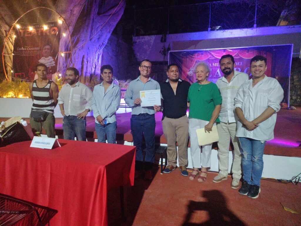 En representación de la Presidenta Municipal, Abelina López Rodríguez, el director de Cultura de Acapulco, Christopher Brito Salgado, externó su beneplácito al entregar el reconocimiento a la trayectoria artística y cultural de 38 años al actor director escénico, actor y promotor cultural independiente, Carlos Cassini quien ha contribuido en el arte teatral a nivel municipal, estatal y nacional convirtiéndose en un refentente del teatro en Acapulco.