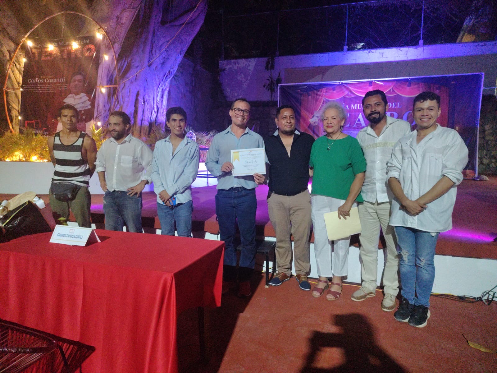 De igual manera, el actor fue reconocido por el presidente del Patronato Domingo Soler, Eduardo Esparza Cortés, al igual que las y los artistas y colectivos teatrales que participaron en las actividades.