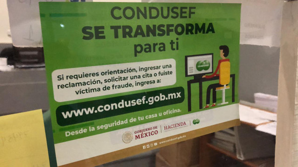 Durante la contingencia sanitaria por COVID-19 algunas instituciones de asesoría y atención a usuarios continúan trabajando, aunque por las circunstancias que se viven han cambiado la forma de atención a los ciudadanos. Tal es el caso de la CONDUSEF (Comisión Nacional para la Protección y Defensa de los Usuarios de Servicios Financieros) quienes brindan servicio mediante citas previas y a través de su plataforma de internet.