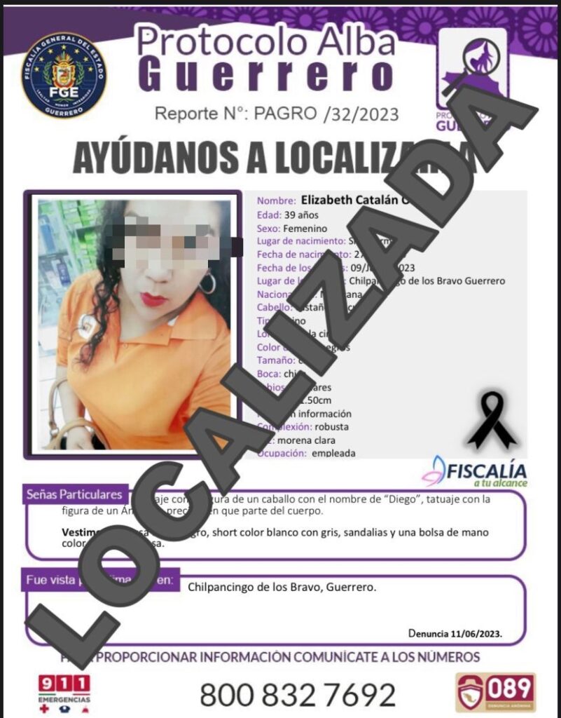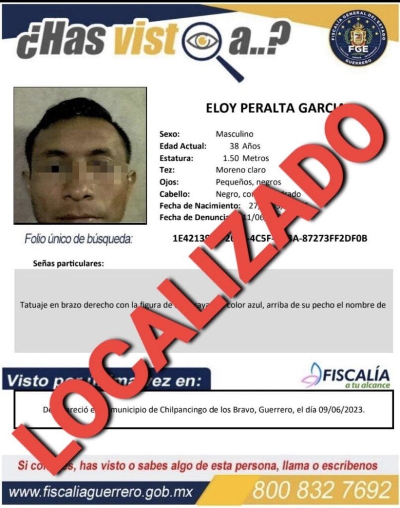 En ese sentido, se desactivaron cuatro alertas de búsqueda de personas correspondientes a la carpeta de investigación iniciada el pasado 11 de junio de 2023 en la Fiscalía Especializada en Materia de Desaparición y Búsqueda de Personas Desaparecidas por el delito de desaparición cometida por particulares (doloso), por el cual como parte de las acciones se realizaron investigaciones de gabinete y diversas búsquedas en campo.