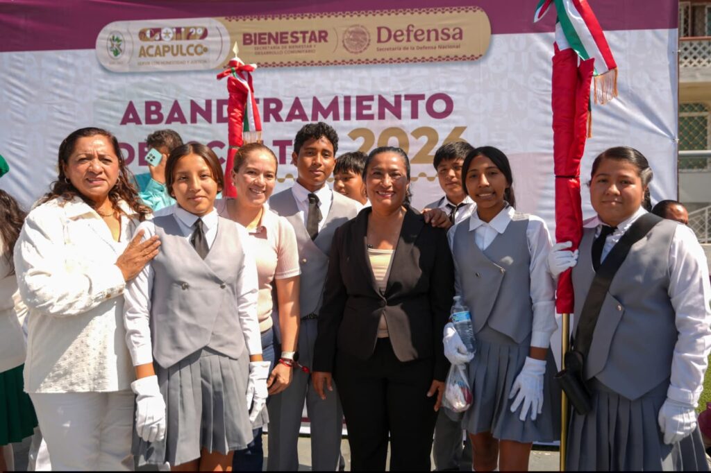 Acapulco, Gro., 24 de febrero de 2026.- La presidenta Abelina López Rodríguez encabezó el Abanderamiento de Escoltas de este año, ceremonia que involucró a 50 instituciones educativas del municipio y que destacó el respeto, la lealtad y el compromiso de la sociedad acapulqueña con los símbolos patrios.