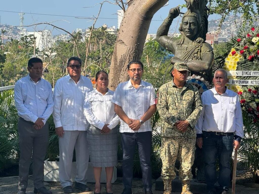 En la explanada del Palacio Municipal de Acapulco, se realizó una ceremonia en la que participaron autoridades civiles y militares, en la que se expuso una semblanza sobre la vida del último emperador mexica.