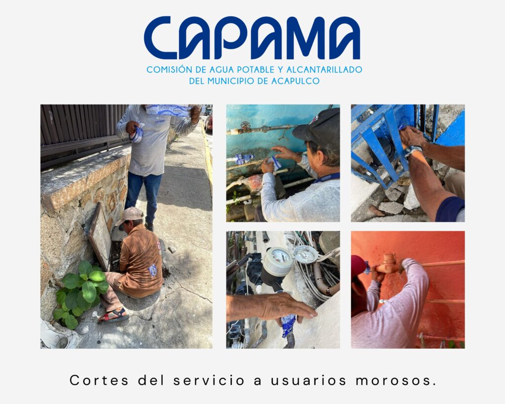 Acapulco, Gro, 08 de julio de 2025.- Con el propósito de aumentar la recaudación y como medida emergente ante la falta de pago de algunos usuarios, el área comercial de la Comisión de Agua Potable y Alcantarillado del Municipio de Acapulco (CAPAMA) dio seguimiento al operativo de cortes y suspensión del servicio de agua potable a negocios y condominios ubicados en diversas zonas de Acapulco.