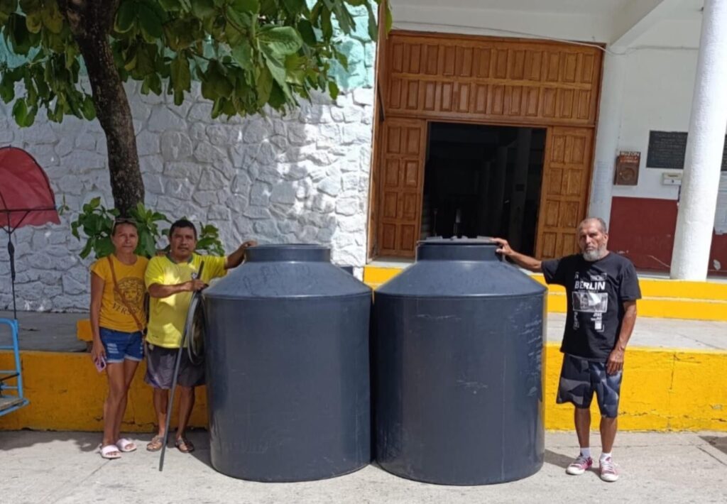 Acapulco de Juárez. Jueves 15 agosto de 2024. Como parte de las acciones para mitigar la escasez de agua en el distrito 8; continúa Marco Tulio Sánchez entregando tinacos sin costo a habitantes de la zona poniente de Acapulco y colonias de Coyuca de Benítez.