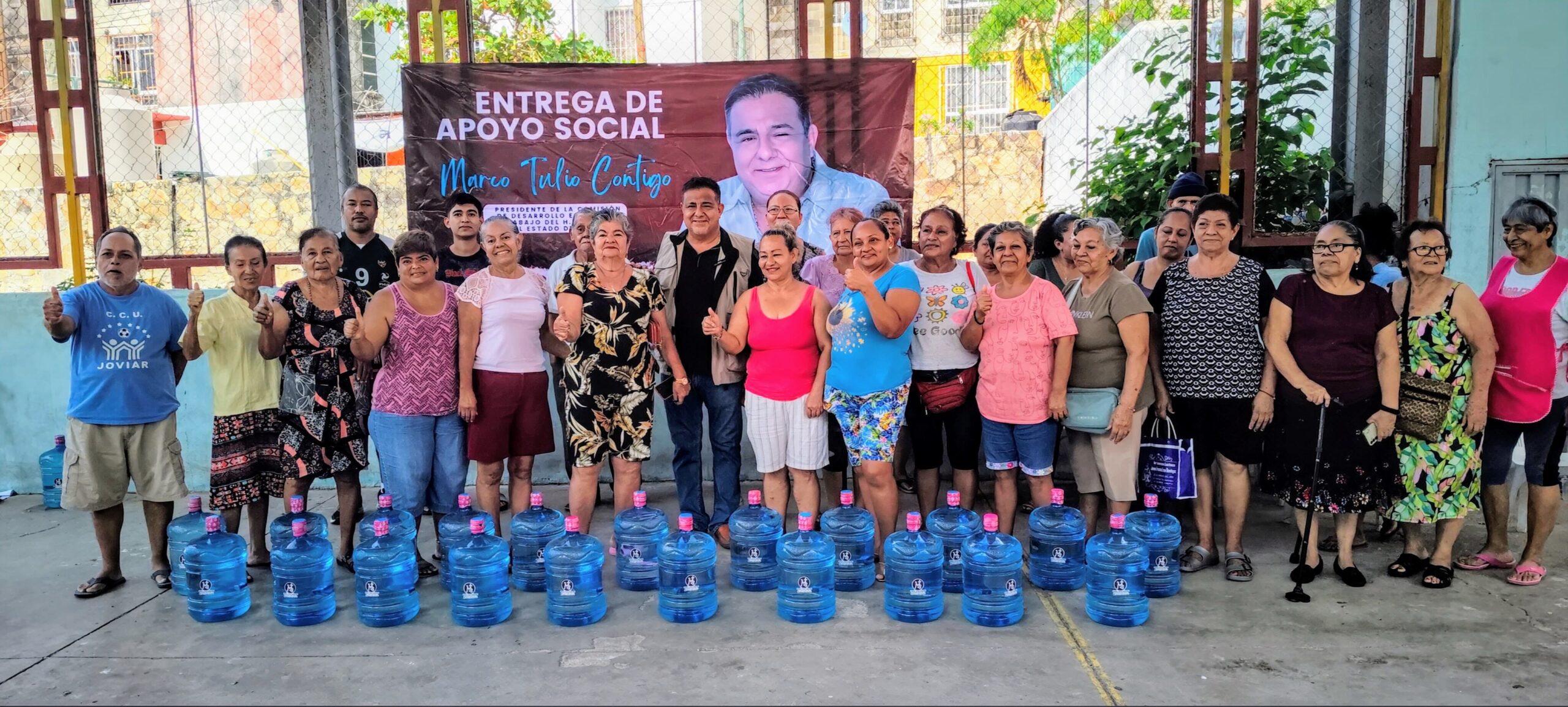 Acapulco, Gro., 09 de febrero de 2026. El diputado local Marco Tulio Sánchez, acudió al Infonavit López Portillo para realizar la entrega de agua gratuita como parte del programa “Agua para Todos”, acción que mantiene de forma permanente en distintas colonias de Acapulco.