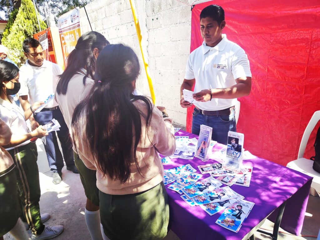 En el exterior del plantel se instalaron módulos informativos sobre Alerta Violeta, Prevención del Delito y de la Violencia.