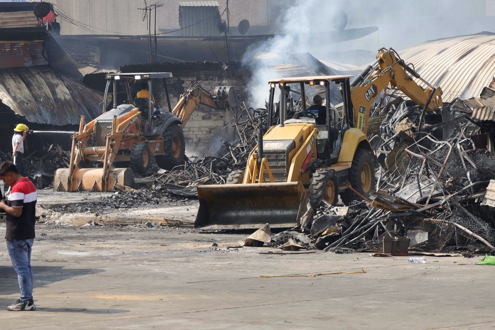 Acapulco, Gro., 05 de junio de 2023.– Dependencias del Gobierno Municipal, de manera conjunta con instancias estatales, la Sedena y la Semar, continúan realizando trabajos de limpieza, evaluación y apoyo en el Mercado Central, ante el incendio registrado durante la madrugada de este lunes entre las calles Feliciano Radilla y Constituyentes.