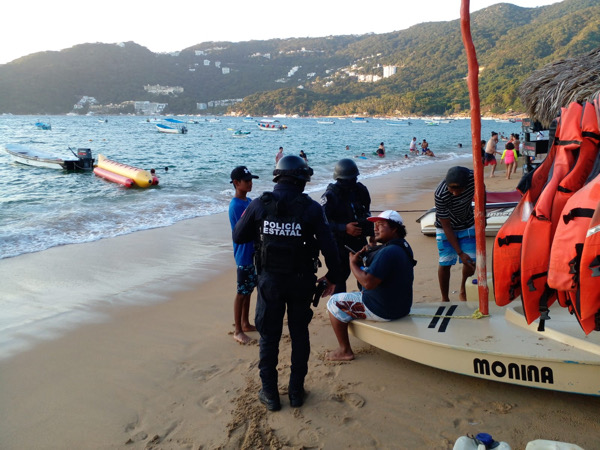 Los elementos de la Policía Estatal también recorrieron las distintas playas y avenidas principales de los puntos turísticos como Acapulco e Ixtapa-Zihuatanejo, donde además pidieron a la población a respetar las medidas sanitarias para evitar la propagación del Covid-19.