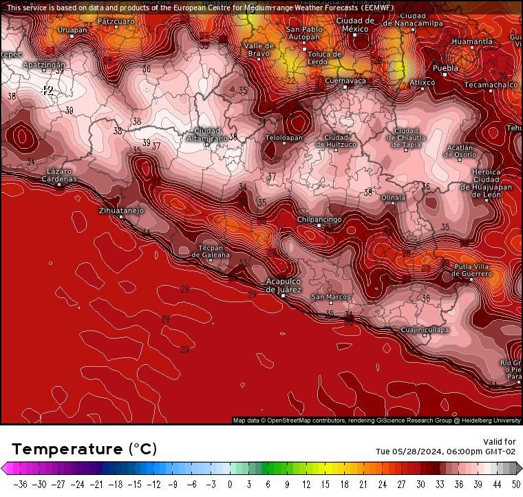 Las condiciones climatológicas son favorecidas por una circulación anticiclónica ubicada en los niveles medios de la atmósfera, las cuales permanecerán durante el transcurso de esta semana, generando un ambiente extremadamente caluroso y temperaturas que podría alcanzar los 45 grados Celsius, principalmente en municipios de las regiones Tierra Caliente, Norte, Montaña y Costa Chica.
